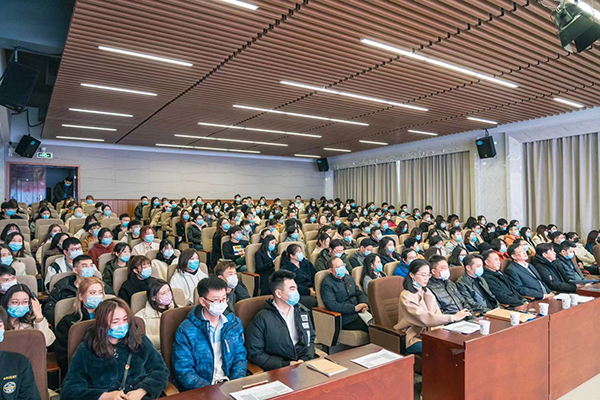 副校长谈传生结合高等教育深化改革的背景,围绕人才培养、学科建设、专业改造等工作,解读了学校在“十四五”开局之年提出的“全面建成百强大学”的宏伟目标。他肯定了学院在“十三五”时期取得的成绩,指出要为青年教师创造良好的成长发展环境、要为广大学子提供一流的教书育人氛围;希望学院能够将党的领导与学院中心工作紧密融合,将学科发展与服务经济社会发展紧密融合,将专业建设与人才培养质量紧密融合,为学院在“十四五”时期的建设发展提出了科学性与可行性的指导意见。