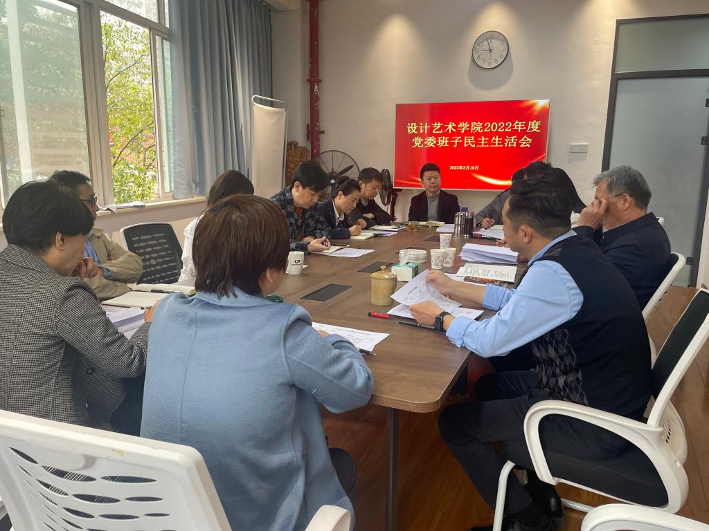 316日,设计艺术学院党委召开2022年度民主生活会。会议以全面贯彻习近平新时代中国特色社会主义思想,深刻领悟“两个确立”的决定性意义,增强“四个意识”、坚定“四个自信”、做到“两个维护”,团结带领党员干部群众以奋发有为的精神贯彻落实党的二十大作出的重大决策部署为主题,聚焦“六个方面”,查摆不足,分析原因,认真开展批评和自我批评。学院党委书记李伟主持会议,学院班子全体成员参加。副校长谈传生、组织部副部长李芳瑾到会指导。