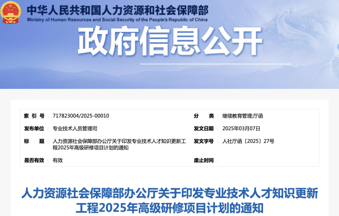 MG冰球突破官网获批人社部2025年高级研修项目计划