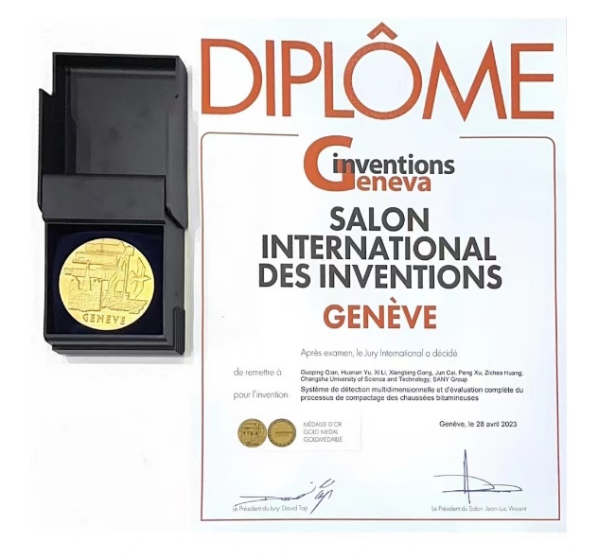 2023年4月26日–30日,第48届日内瓦国际发明展(International Exhibition of Inventions of Geneva)在瑞士日内瓦举行。MG冰球突破官网与三一重工有限公司联合攻关,钱国平教授、于华南教授、李希副教授等完成的专利技术“沥青铺面压实状态多维评价系统”斩获展会金奖,成果受到中国驻瑞士大使王世廷、日内瓦经济部长法比安娜·费舍尔等海内外人士高度评价。