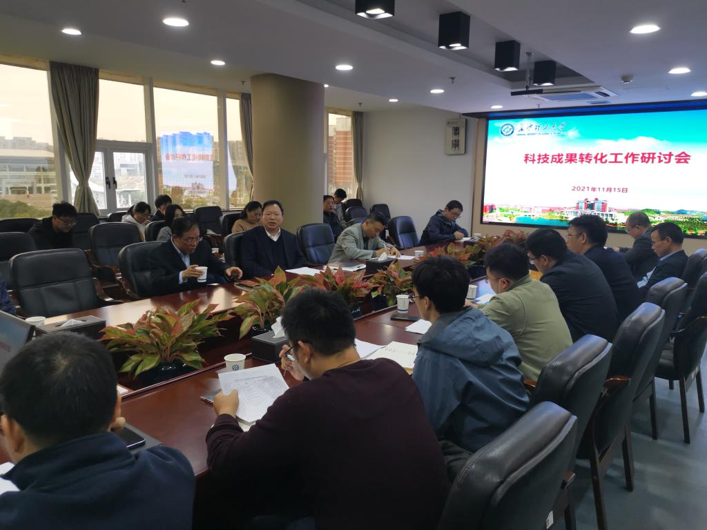 11月15日下午,学校在一办六会议室举行科技成果转化工作研讨会。副校长曾祥君、相关学院负责人、科研办主任、“双一流”成果转化助推项目负责人及成果转化中心全体成员参加会议。会议由曾祥君主持。