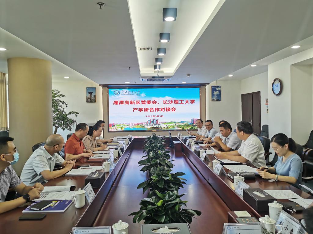 9月9日上午,MG冰球官网与湘潭高新区管委会产学研合作洽谈会在云塘校区一办公楼五会议室举行。校党委副书记、校长曹一家,副校长曾祥君,人文社科处、科研部、成果转化中心及相关学院负责人,湘潭高新区管委会副主任吴小波,湘潭高新区科技创新局局长文平,湘潭高新区产业发展局副局长刘灿辉及企业家代表湖南世优电气股份有限公司董事长彭建国,湖南华亿高新科技成果转化服务有限公司董事长杜良忠共同参加。
