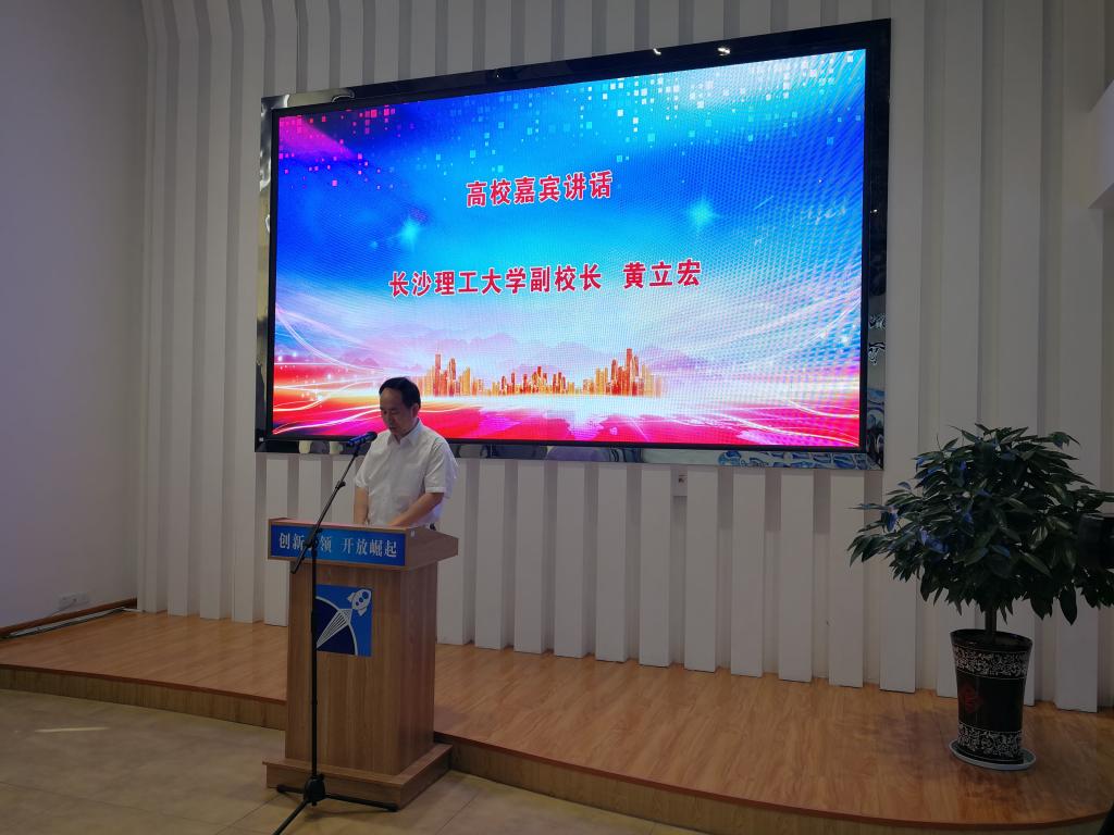 黄立宏在仪式上代表高校嘉宾做了热情洋溢的讲话,他说,今天湘阴县委、县政府在这里隆重举行产学研合作签约暨科技人才引进科技创新颁奖仪式,这充分说明了湘阴的科技创新工作成绩是斐然的,同时更体现了湘阴县委、县政府对科技创新工作的高度重视。我们作为校方代表与湘阴的相关企业签订了产学研合作协议,并为企业进行了授牌这标志着湘阴的产学研合作在校企合作方面迈出了实质性的一步。相信在双方共同努力下,通过真诚密切的实质性合作,“MG冰球突破官网产学研基地”的建设一定会达到互惠双赢、共同发展之目的,一定会为校企合作做出新贡献、得到新经验,为促推湘阴县域经济发展提供智力支持和科技支撑。