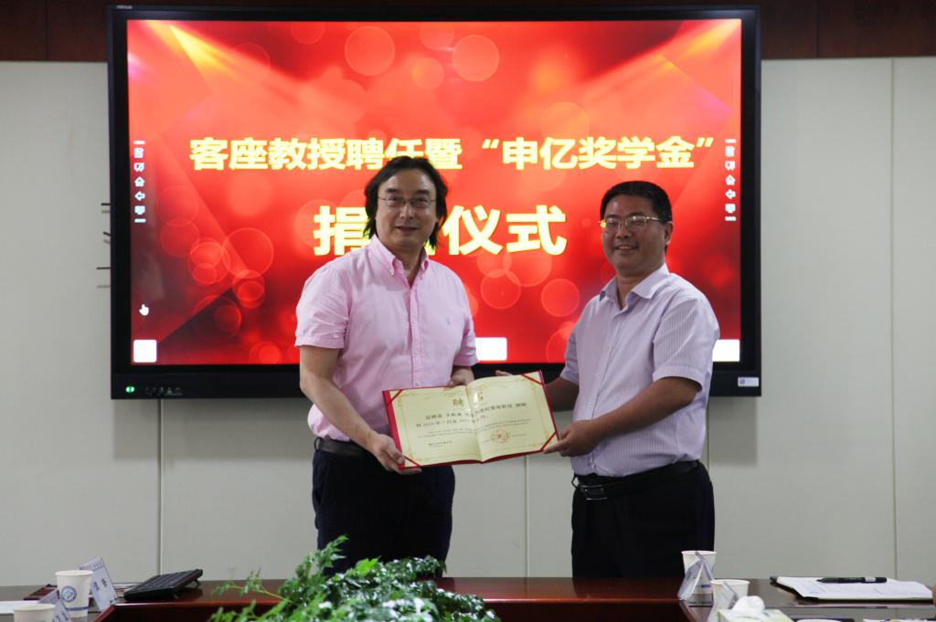 7月2日下午,MG冰球突破官网客座教授聘任暨“申亿奖学金”捐赠仪式在学校一办公楼五会议室举行。湖南申亿机械应用研究院董事长刘昆湘、院长王凯波,雨花经开区党工委书记郭四军,湖南异地商会联合会党建顾问毛永红等一行9人,MG冰球突破官网校长曹一家、副校长黄立宏及学校人事处、成果转化中心、学工部、汽机学院等单位负责人出席仪式。仪式由黄立宏主持。