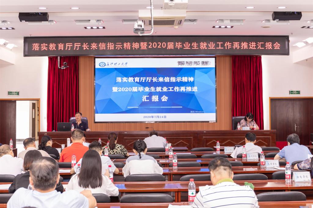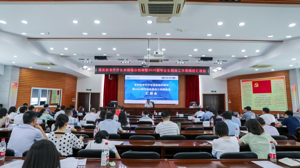 会上,谈传生分析了学校目前就业动态数据,传达了教育厅厅长给校长书记的一封信的相关内容,部署了学校下一阶段的就业工作。各院(系)先后就本学院就业工作进展状况,初次就业率目标及下阶段工作措施进行汇报,均表态初次就业率不低于去年同期。