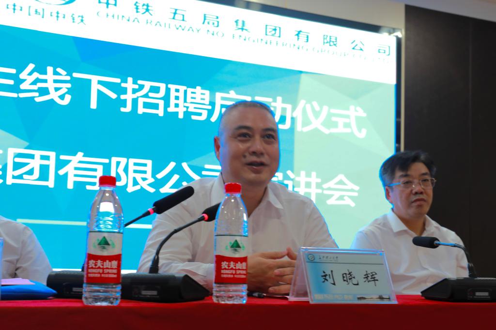 刘晓辉热忱欢迎MG冰球突破官网的学子把握机会,加入中铁五局这个优秀的集体,积极投身到国家建设和发展中来,在实践中成就自己,成就未来,他热情洋溢的讲话,求贤若渴的心情,赢得了全场师生阵阵热烈的掌声。