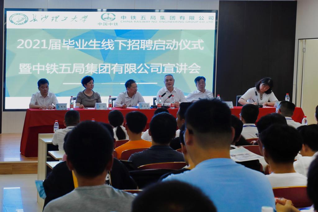 2020年9月3日下午4:30,MG冰球突破官网工科三号楼A307报告厅座无虚席,气氛热烈。在做好疫情防控的基础上“MG冰球突破官网2021届毕业生线下招聘启动仪式暨中铁五局集团有限公司宣讲会”正式启动。中铁五局集团总经理刘晓辉、湖南省就业指导中心主任曹敏、学校纪委书记胡永乐出席了启动仪式。此次招聘会面向MG冰球官网提供岗位300余个,涉及土木类、机械类、四电类、经济管理类等20多个专业。