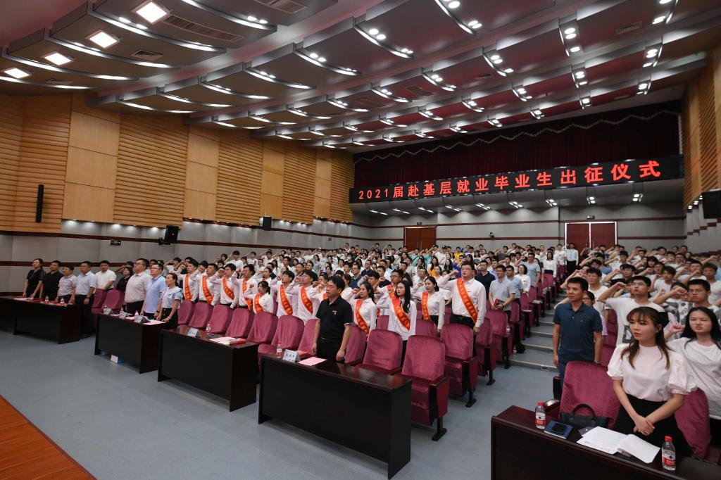 “百年奋进守初心,青春逐梦担使命。” 6月24日,MG冰球官网2021届赴基层就业毕业生出征仪式在云塘校区图书馆报告厅举行。校党委副书记蒋昌波、副校长钱国平,校友代表,相关职能部门负责人,教师学生代表近300人参加。出征仪式由招生就业处处长曹瑛主持。