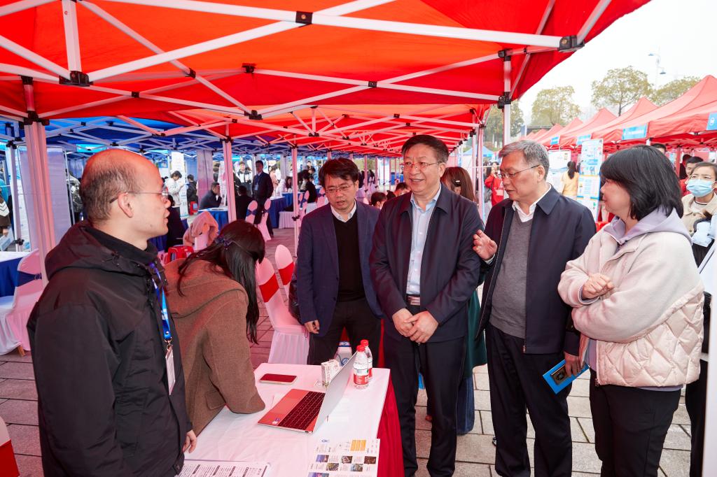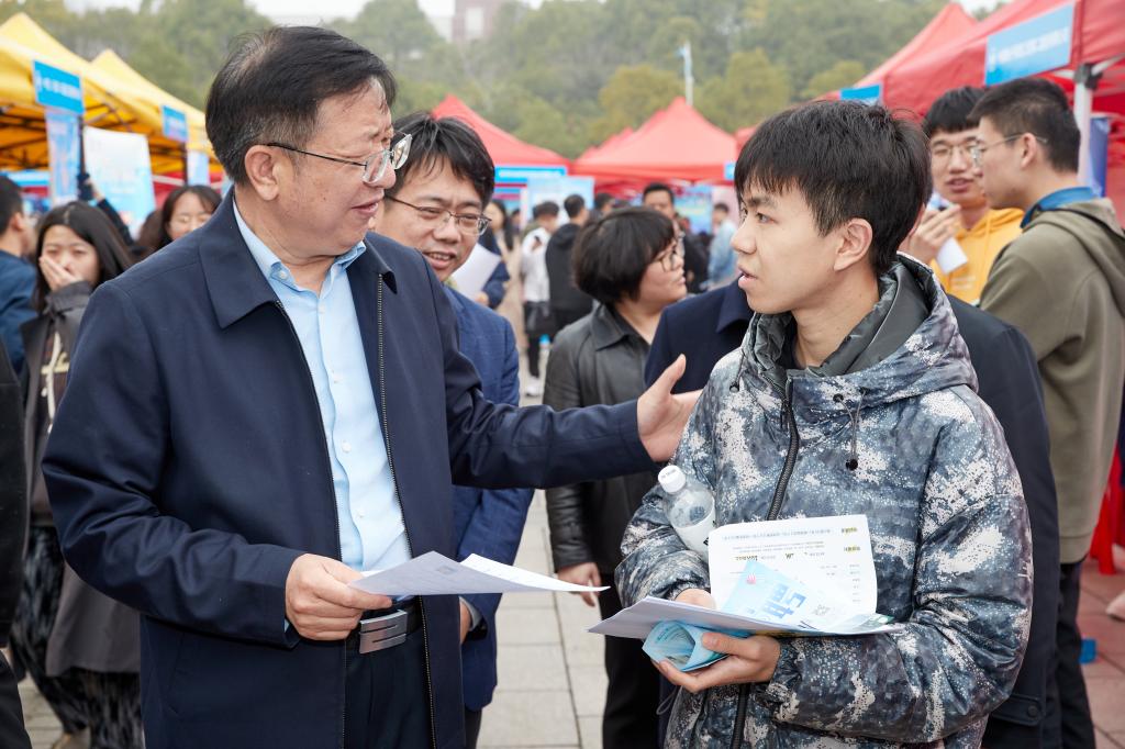 为落实教育部2023届高校毕业生春季促就业攻坚行动,全力促进毕业生尽早就业、顺利就业,3月4日,MG冰球突破官网“宏志助航”培训基地2023届毕业生春招专场招聘会在云塘校区图书馆前坪举行,湖南省教育厅学生处、湖南省大中专学校学生信息咨询与就业指导中心领导出席活动。校党委书记付宏渊在招聘现场指导工作,与用人单位亲切交流,鼓励应聘学生抓住机会,积极行动。副校长谈传生、钱国平及相关部门负责人到现场指导。