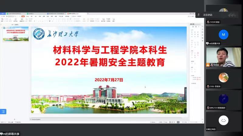 材料学院顺利开展2022年暑期学生安全主题教育会议