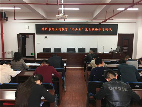 为深入推进“不忘初心、牢记使命”主题教育工作,确保各项规定动作做实做好做到位,10月28日下午,材料学院党总支开展主题教育“回头看”党员理论学习测试,以此检验全体党员学习成效。本次测试采用闭卷形式进行,测试范围紧扣“不忘初心、牢记使命”主题教育应知应会的知识内容。测试前,院党总支书记张国强首先组织全体党员进行主题教育“回头看”,对我院主题教育前期开展情况进行全面盘点,要求全体党员在接下来的主题教育“回头看”中做到思想上不放松、标准上不降低、力度上不减弱。测试过程中,党员们专心致志,认真答题,展示了我院党员勤学上进的精神风貌。