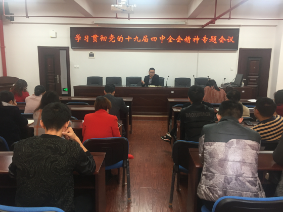 11月19日下午,我院召开全体教职工思想政治专题大会,集中学习贯彻党的十九届四中全会精神,学院全体教职工参加了会议。会议由院党总支书记张国强主持。