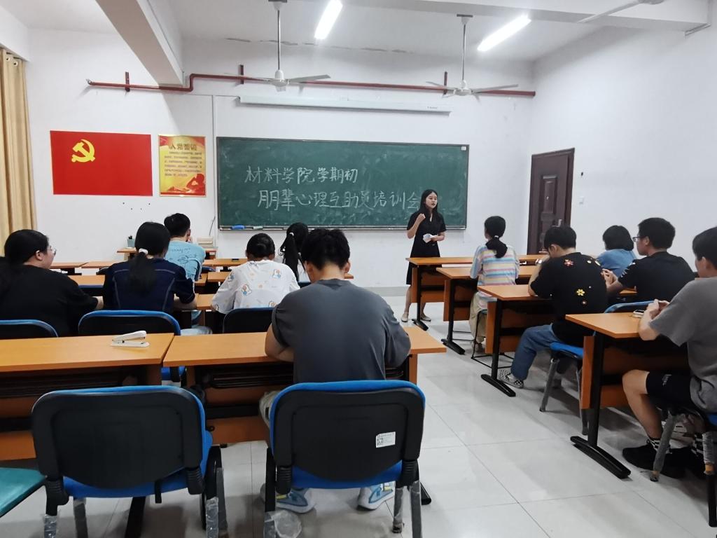 9月15日晚19点,材料学院新能源号楼303室召开学期初朋辈心理互助员培训会。学院心理辅导员谢易真主讲各年级级朋辈心理互助员参