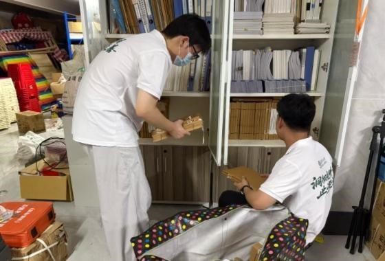 捐赠物资种类丰富,涵盖书籍、衣物、生活用品等。队员们首先对物资进行细致清点,随后有条不紊地开展分类整理:有人蹲在书架旁,将散落的书籍逐一归类,整齐放入书柜;有人负责日用品的分拣,归类后再有序摆上货架,方便后续分发物资;还有队员主动承担起较重物资的搬运工作,来来回回的身影在闷热的环境中穿梭,汗水浸湿了衣衫,却没人停下脚步,脸上始终带着专注的神情。