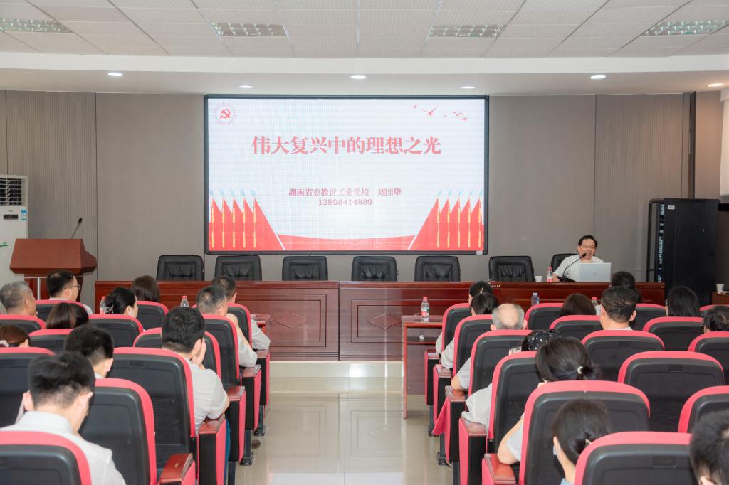 刘国华以《伟大复兴中的理想之光》为题,从强国与复兴、变局与新机、奋斗的密码三个方面,诠释了中国共产党孜孜以求的梦想追求,解读了风起云涌的大国博弈,强调了中国共产党人责无旁贷的使命担当。他强调,进入新时代,中国与世界的关系正经历着历史性的深刻变化,世界正发生百年未有之大变局,作为百年大党和世界第一大执政党的一员,我们必须守住马克思主义之魂、扎牢中华优秀传统文化之根、凝聚核心价值观之力、肩负勇于担当作为之责、亮出敢于善于斗争之剑、严格遵守党纪法规之线,在全面建成社会主义现代化强国的新征程上,踔厉奋发,勇毅前行。