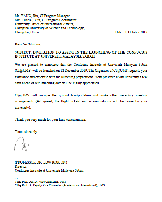 筹办并参加马来西亚沙巴大学孔子学院成立仪式