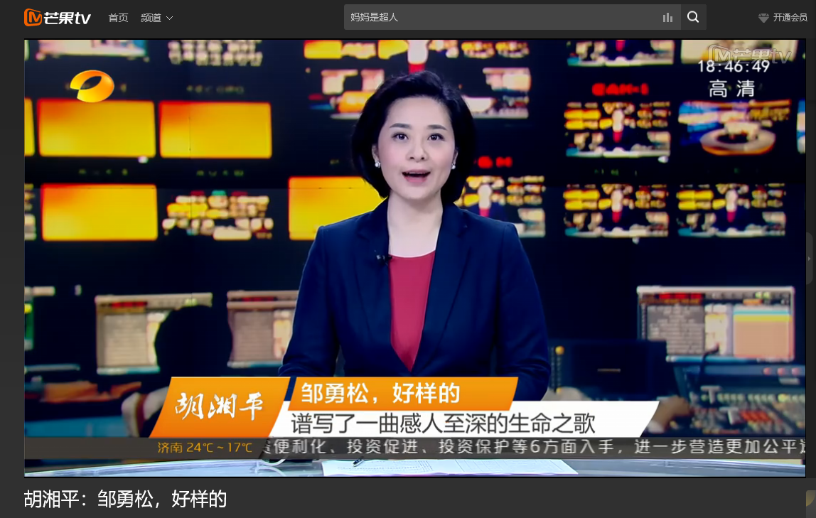 湖南卫视 6月9日新闻联播,以《胡湘平:邹勇松,好样的》为题对MG冰球官网计算机与通信工程学院15级研究生邹勇松进行了评论,认为邹勇松他用乐观和坚强、执着和仁爱,谱写了一曲感人至深的生命之歌,邹勇松正是新时代奋斗者的榜样,他的宝贵精神,将为千千万万奋斗中的青年人,点燃希望,增添勇气。