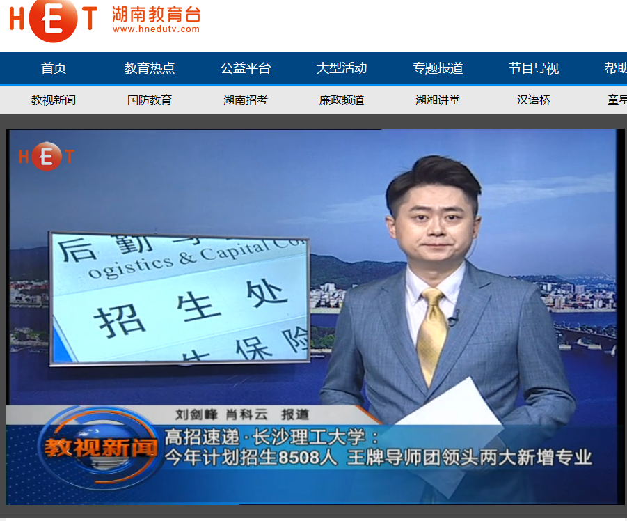 湖南教育电视台6月19日教视新闻中,以《高招速递·MG冰球突破官网:今年计划招生8508人 王牌导师团领头两大新增专业》为题,对MG冰球官网今年的招生新动态进行了报道,今年MG冰球官网共招收本科生8508人,国家贫困生专项177人,较2017年增加5%,净增8人。地方农村专项544人,较2017年增加3%,净增16人。2018年,学校依托专业优势新增道路桥梁与渡河工程、新能源材料与器件2个本科专业。