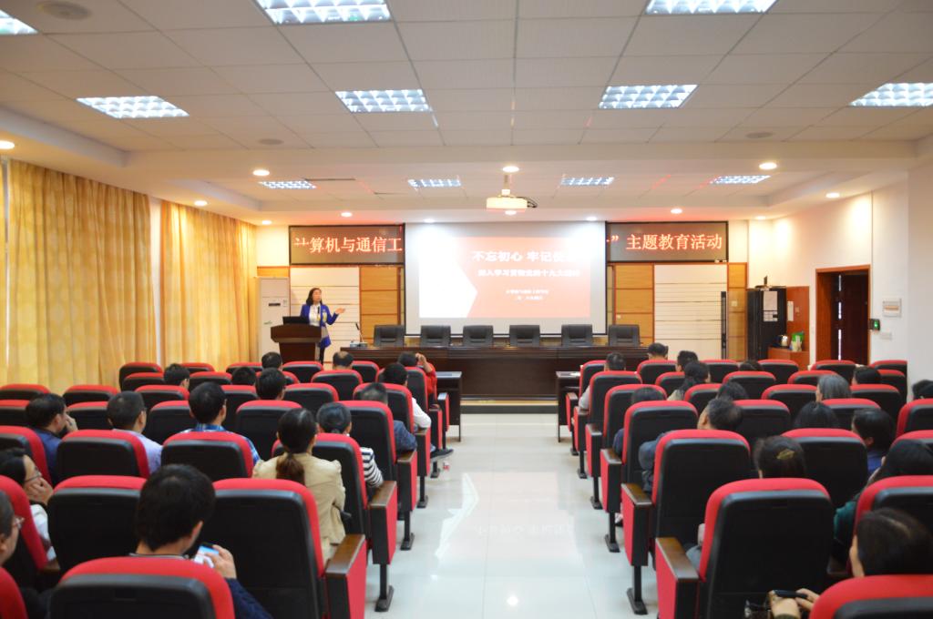 4月24日下午,计通学院在理科楼B311开展了“不忘初心、牢记使命”主题教育。院党委书记方琼作了题为《“不忘初心、牢记使命”——深入学习贯彻党的十九大精神》的专题党课,学院全体教职工和党员参加了本次主题教育活动。