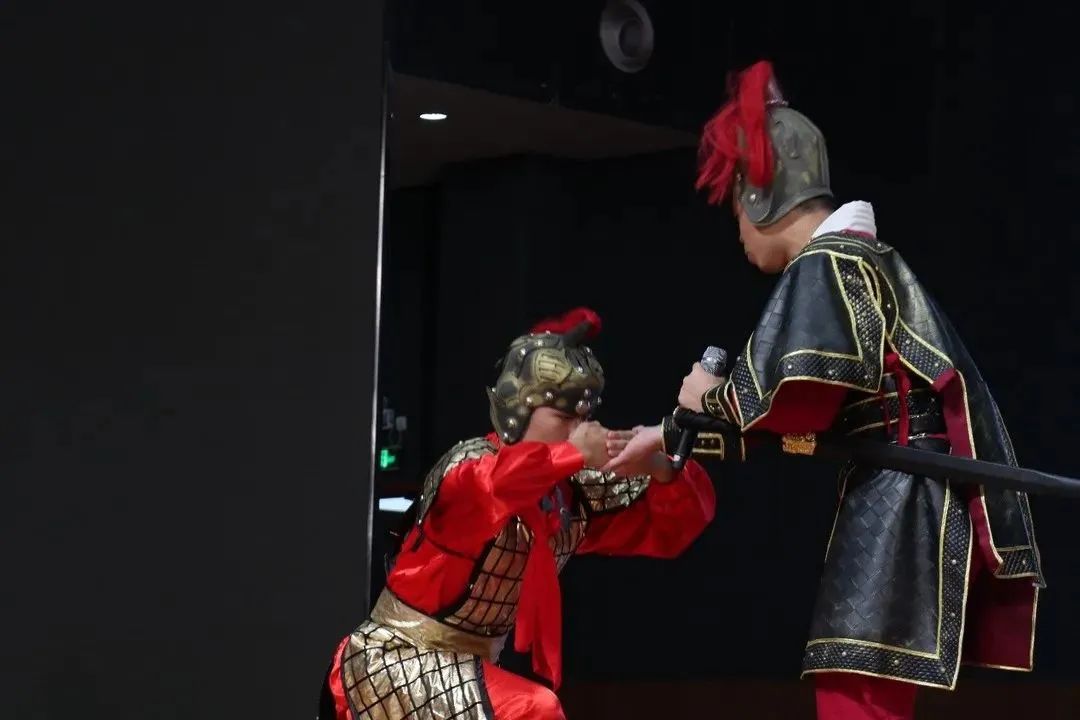 整个表演以将军庙为背景,深刻地诠释了岳飞“精忠报国”的典故,表现出代表着中华民族优良传统的自强不息、敬业奉献和大爱无疆的情怀。台上的每一个表演者都用朴实而铿锵的语言,表达了对国家的热爱和对未来的期盼。观众们被他们深沉的情感所感染,前所未有地领悟到了作为中国人应该时刻牢记的家国情怀。整个演出充满着浓厚的中国情怀,评委和观众们对此赞叹不已。最终,《铮铮铁骨魂,尽忠报国义》获得了决赛二等奖,