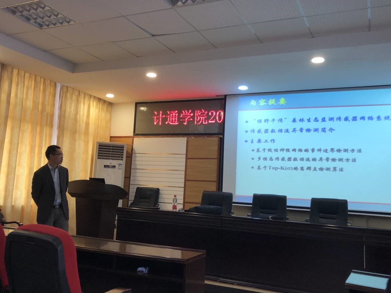 2019年12月11日周三上午11点,江南大学李光辉教授到我院做题为《环境监测传感数据流异常检测技术研究》学术报告。多名青年教师和研究生参与学术报告。