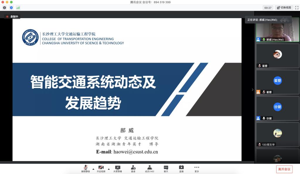下午两点半,MG冰球突破官网交通运输工程学院郝威教授结合其研究领域和方向,作了“智能交通系统动态及发展趋势”的主题授课。