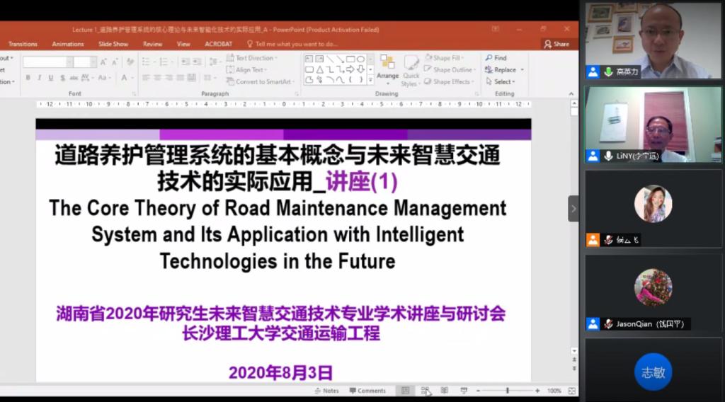 上午九点十分第一场主题授课由加拿大滑铁卢大学李宁远教授主讲,主题为“道路养护管理系统的核心理论与未来智能化技术的实际应用”。他详细介绍了道路养护资产管理系统,包括核心理论基本概念和应用系统的框架结构设计,并对几个关键的子系统功能进行了重点介绍,为从事交通运输工程基础设施建设和养护管理研究的研究生和专业技术人员提供了全方位的理论和实践指导。