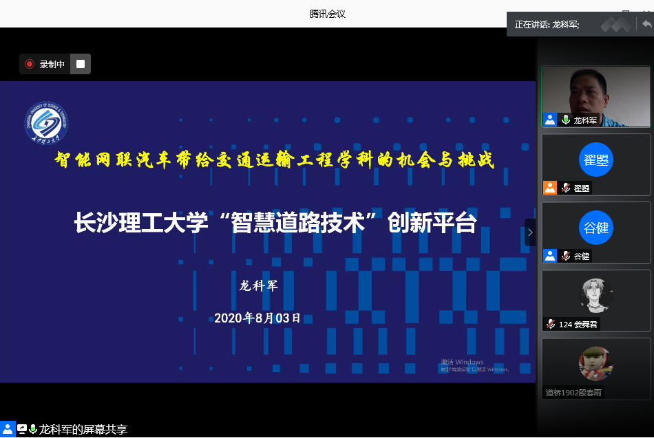 2020年8月4日下午两点半,MG冰球突破官网龙科军教授结合其研究领域和方向,作了“智慧道路技术创新平台建设研究与多模式综合交通网络协同构建”的主题授课。