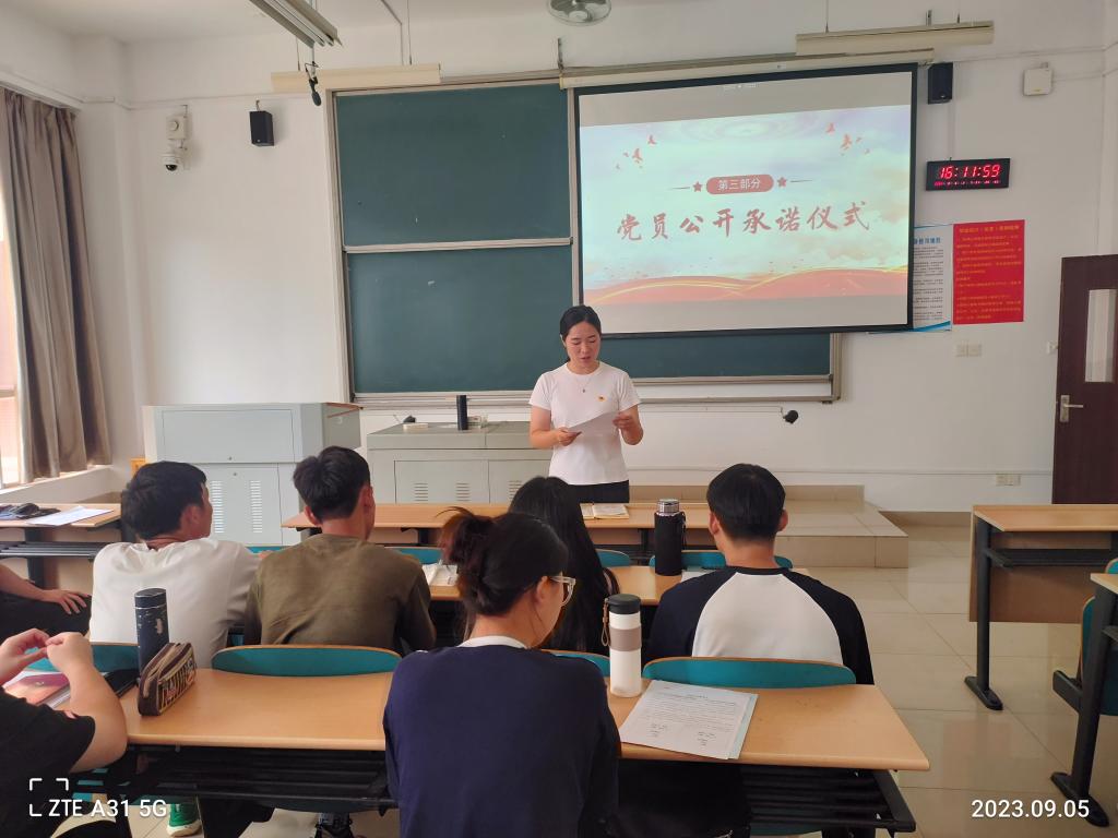 此外,各支部结合主题教育期间学习成效,就2022-2023学年先锋模范作用发挥情况、2023-2024学年承诺事项举行了党员公开承诺仪式,并将在本学年末通过个人自评、党员互评、群众评议、组织评定等方式,对承诺事项完成情况进行综合评议。