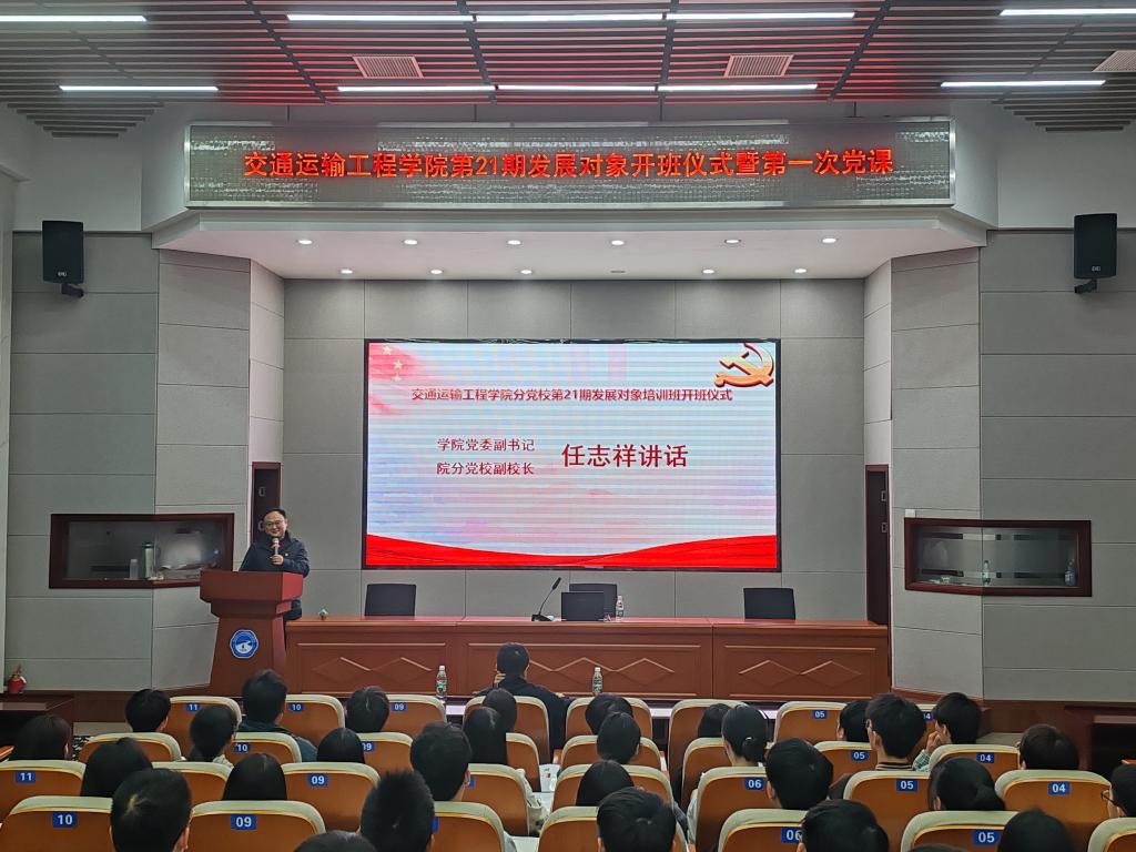 11月4日晚,交通学院分党校于工二交通科技报告厅举行第二十一期发展对象培训班开班仪式,院党委副书记、分党校副校长任志祥,2023级辅导员彭笠和第二十一期发展对象培训班全体学员参加。