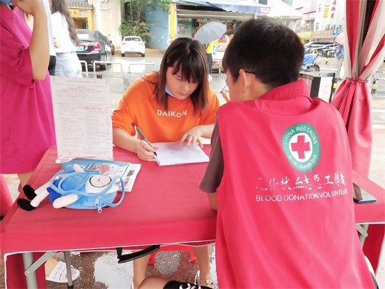 由于天气原因,此次活动仅有4人献血,献血总量共1600cc。尽管大雨滂沱,但志愿者们依然坚守着工作岗位。志愿者汪玉表示:“在了解了献血的注意事项后,我发现自己的体重不达标,既然暂时不能通过献血帮助他人,那么我希望通过志愿服务帮助更多的爱心人士,所以无论什么天气我都会一直坚持。”