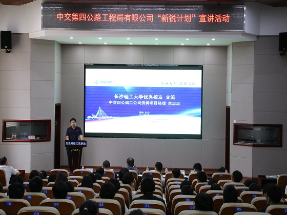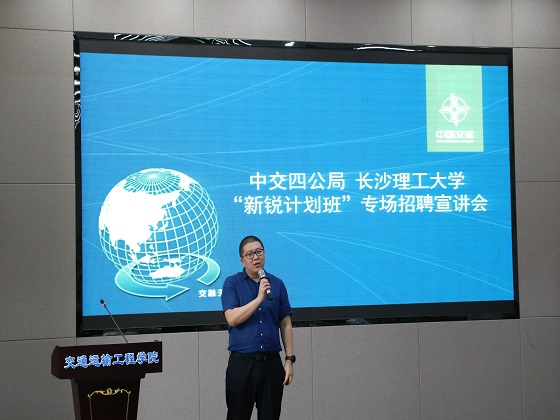 5月25日下午,MG冰球官网与中交第四公路工程局有限公司(以下简称“中交四公局”)在工二交通科技报告厅举行2020届“新锐”联培班校园招聘宣讲会。中交四公局五公司副总经理夏邵君、投资事业部人力资源部经理、综合事务部经理张小军、二公司人力资源部经理马克强、二公司贵黄项目经理兰志忠、MG冰球突破官网招生就业处副处长贺良、交通学院党委副书记田上出席宣讲会,100余名大三学子参与宣讲会。贺良主持宣讲会。