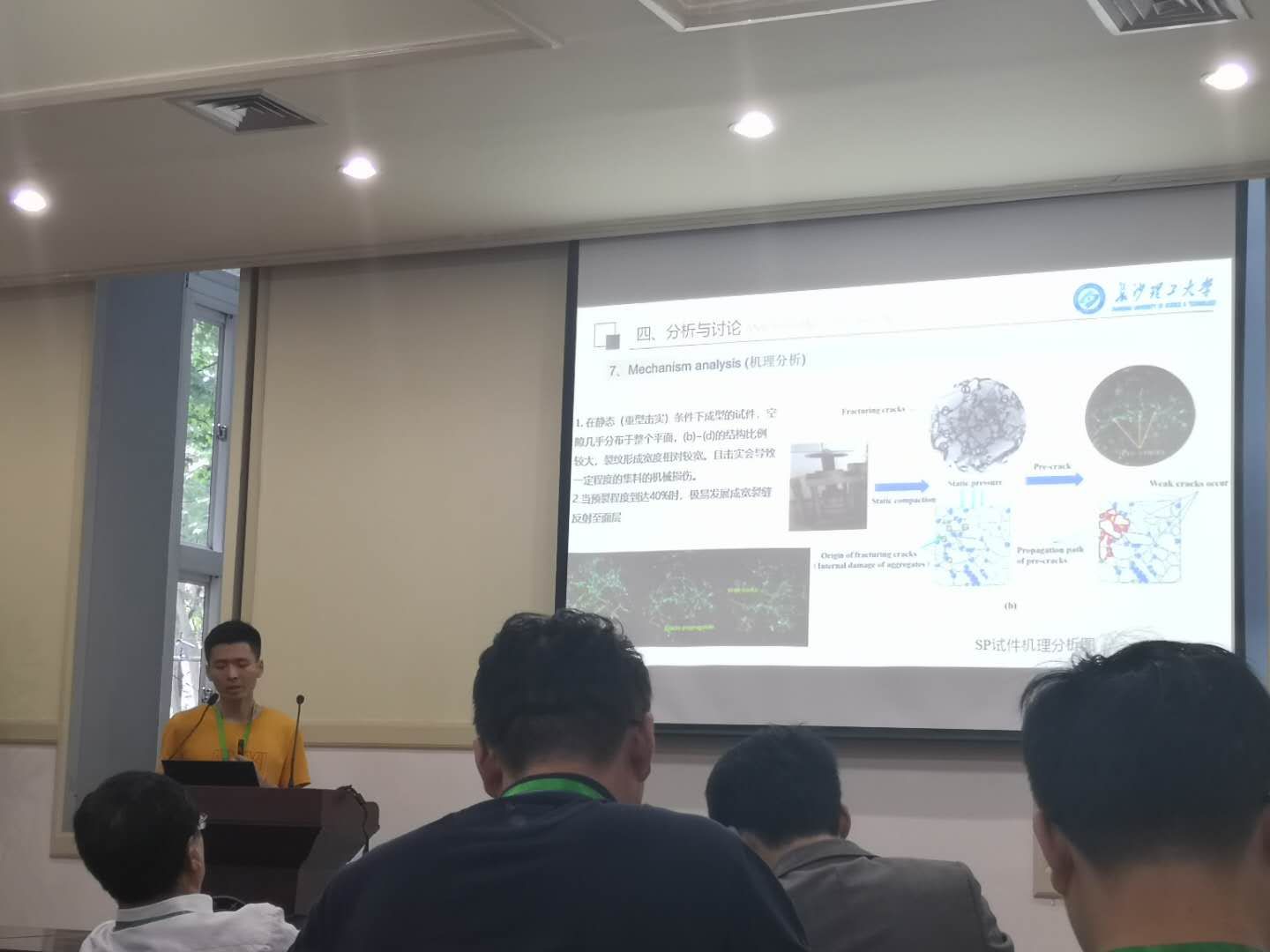 本次大会包括11场大会特邀报告、16场主题报告,70余场分会场学术报告,报告者汇聚了土木工程材料领域的权威专家,如东南大学缪昌文院士、清华大学阎培渝教授、湖南大学史才军教授等,大会向“砼”行学者们展现了目前建材领域最先进最前沿的研究成果。高英力副院长担任了“可持续混凝土耐久性与微结构”分会场主席,2018级硕士研究生段开瑞同学在“可持续混凝土结构性能”分会场做了题为“动静态成型条件下预裂水稳碎石性能的对比研究”的学术报告,报告论文收录于会议论文集中。