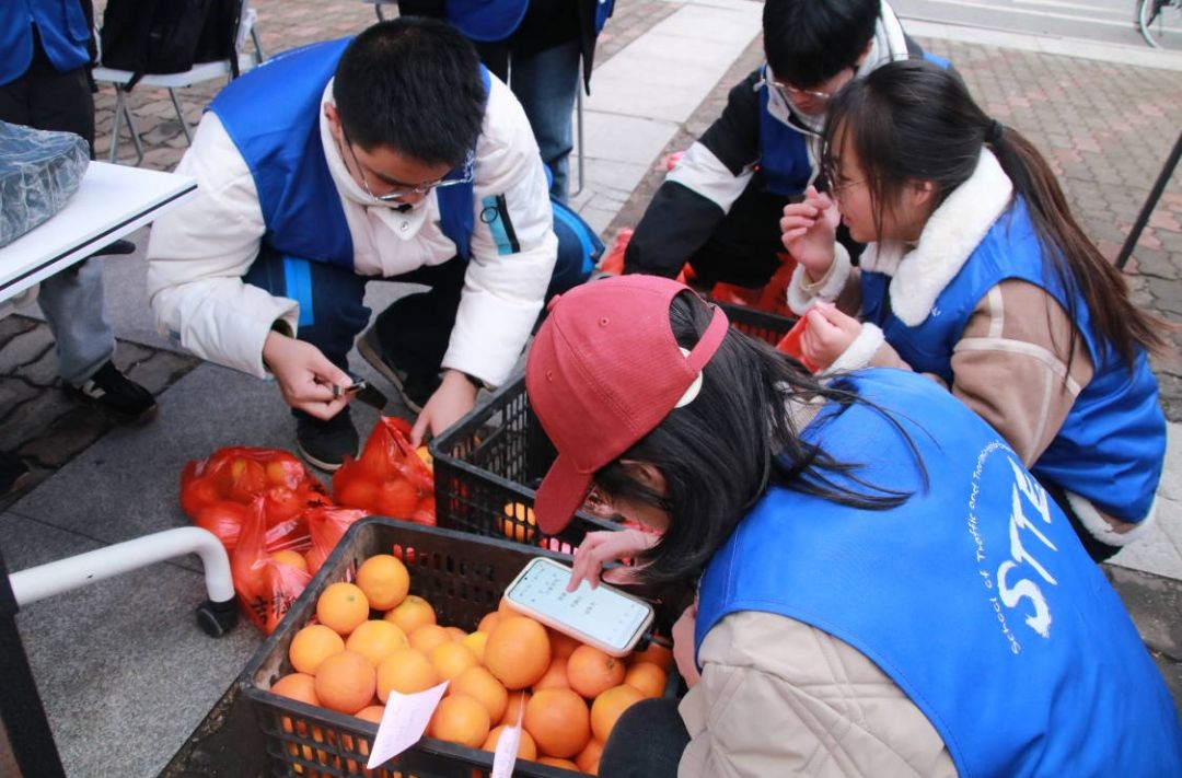 本次营销大赛共有来自19个学院的29支队伍参加,为争取更高销售额、助力消费帮扶、赋能乡村振兴,这些队伍“各显神通”。队员们相互商讨,克服困难,创新营销方式:转发抽奖、玩偶引流、送货上门、自助销售等营销金点子频出。提升售卖亲和力的同时也增强了消费者的新鲜感,取得了良好的线下营销效果。与此同时,线上售卖渠道也一样火爆,“亲们,小心心点起来,为我们坪山村特色农产品助力......”在直播平台上的参赛队员与网友们展开了趣味互动,详细为受众讲解坪山村脐橙种植环境、品质、最佳食用方式和功效等方面的内容,让消费者更加深入地了解和支持坪山村特色小农产业发展。