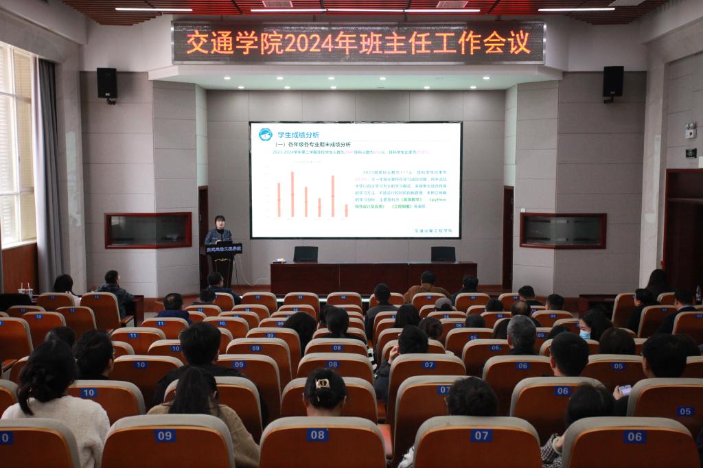 3月19日下午,交通学院于云塘校区工科二号楼B301召开2024年班主任会议。学工部心理健康教育中心主任易敏出席,学院全体班主任及辅导员参会,本次会议由交通学院党委副书记任志祥主持。