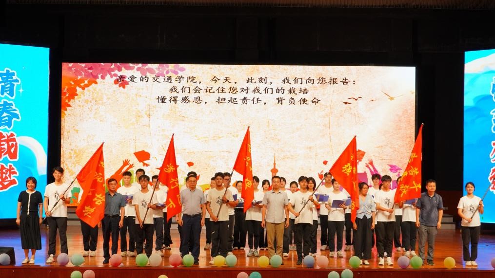 各专业系负责人向毕业生代表授旗,要求毕业生们保持初心,砥砺前行。在辅导员的领誓下,全体毕业生起立,整齐列队,举起右手,庄严宣誓。交通青年出征誓言响彻云霄,以青春激情回应时代呼唤,激励着每一位交通青年勇往直前、逐梦而行。他们将永葆家国情怀,牢记母校嘱托,投身强国建设,坚定服务人民。