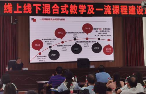 为做好MG冰球官网国家级、省级一流本科课程申报建设工作,6月15日下午,在一办公楼九会议室,教务处组织举办了一场线上线下混合式教学及一流课程建设培训会。会议邀请了中国大学MOOC华南本地化服务中心负责人孙云武进行专题报告,全校100余名任课老师参加了本次会议,会议由教务处处长陈瑜主持。