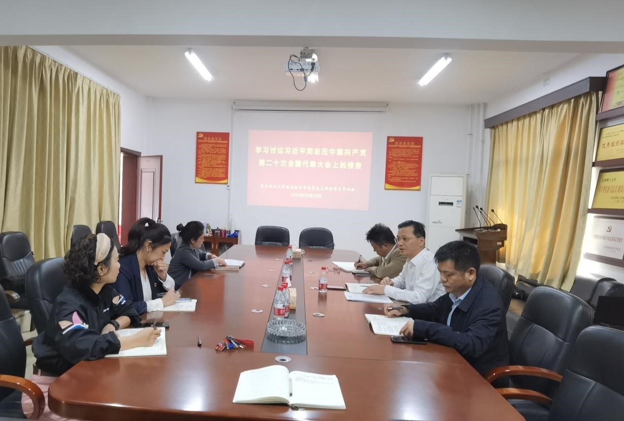 10月16日上午十点中国共产党第二十次全国代表大会在北京人民大会堂隆重召开。继续教育学院组织全体教职工和学生代表集中收看了开幕式盛况。会后,学院党总支理论学习中心组在15教三楼会议室进行了中心组学习,学习和讨论习近平同志在中国共产党第二十次全国代表大会上的报告,党总支书记何纯芳主持。