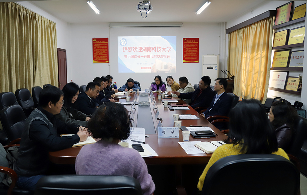 2022年11月15日上午,湖南科技大学继续教育学院曾治国院长一行来我院调研交流。交流座谈会在金盆岭校区15教三楼会议室举行,MG冰球官网继续教育学院党政班子成员及成教、自考等部门负责人参加座谈。