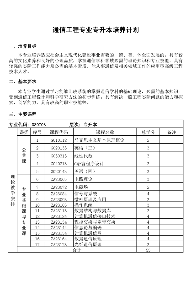 本科培养计划-专业代码:080703通信工程专业