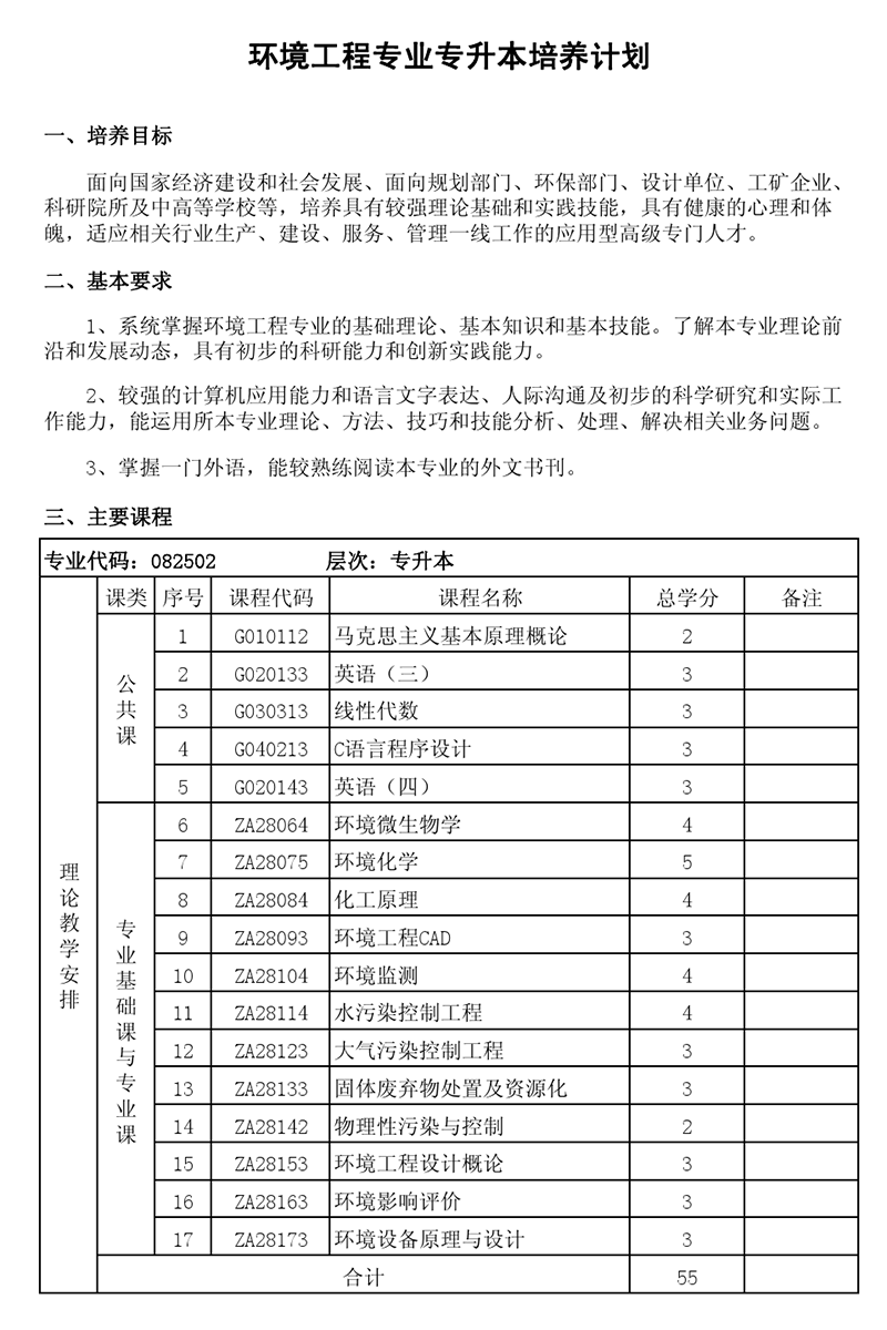 本科培养计划-专业代码:082502 环境工程专业