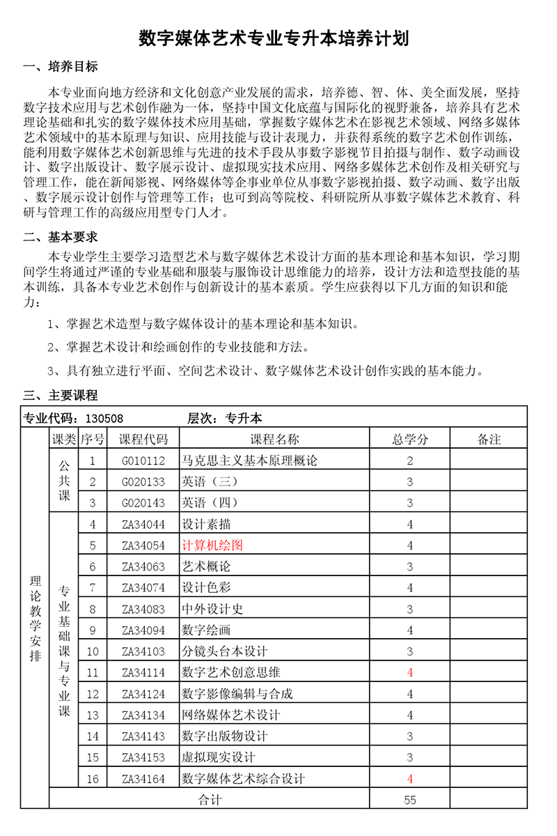 本科培养计划-专业代码:130508 数字媒体艺术专业
