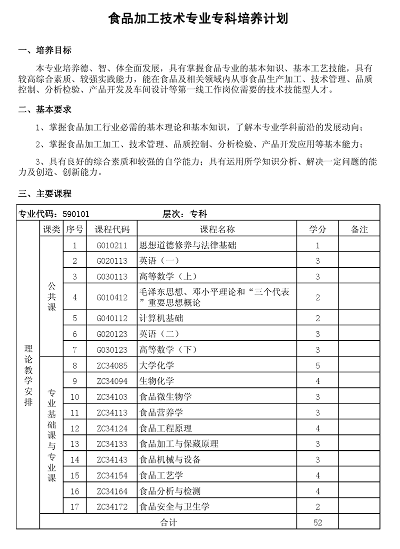 专科培养计划-专业代码:550203 水利水电工程管理专业