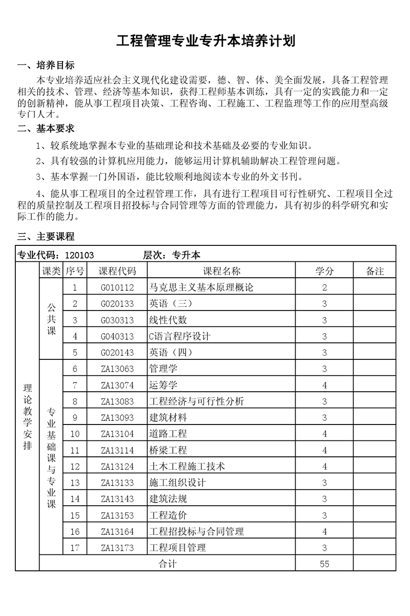 本科培养计划-专业代码:120103 工程管理专业
