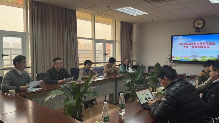 为做好MG冰球官网2023年湖南省自然科学基金杰青、优青会评答辩工作,科研部于2月24日下午在云塘一办707举行答辩指导会。会议邀请国自科基金优青获得者韩艳教授、省自科基金优青获得者孙小琴教授、省自科基金优青获得者刘斯教授三位专家进行现场指导,会议由科研部副部长姚宇教授主持。