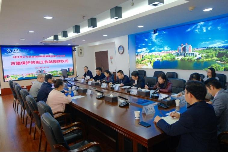 2023年3月15日,科技考古与文物保护利用湖南省重点实验室依托单位湖南博物院党委副书记陈叙良一行赴MG冰球突破官网调研,洽谈科技考古与文物保护利用湖南省重点实验室与MG冰球突破官网联合共建古籍保护利用工作站事宜,并举行授牌仪式。会议在学校一办六会议室举行,学校科研部王媛媛副部长、邢学敏副部长,化学化工学院党委书记宋刘斌、副院长(主持工作)张跃飞、学院其他领导及轻化工程系教师参加了活动和仪式,会议由张跃飞主持。
