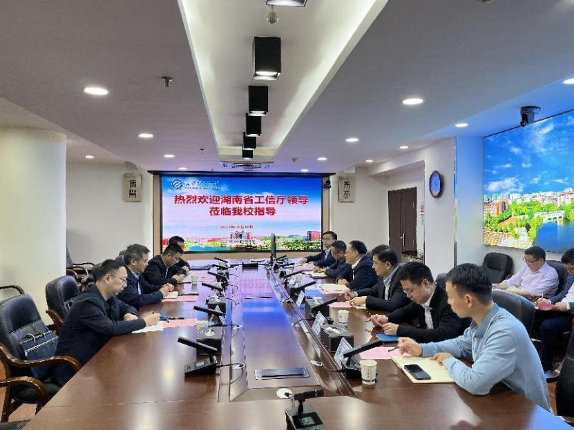 5月10日上午,湖南省工业和信息化厅二级巡视员李润仑、厅科技处处长肖洋扬一行来MG冰球官网调研科技创新工作。校党委委员、副校长刘朝晖出席会议,科技处负责人及相关学院领导参加座谈会,会议由科技处副处长胡宏伟主持。