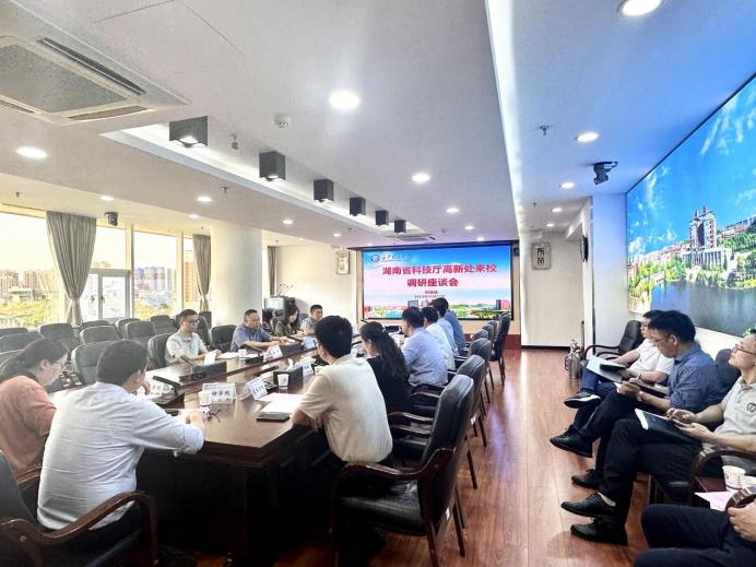 5月17日下午,湖南省科技厅高新处处长王先民一行来MG冰球官网调研科技创新工作。校党委委员、副校长刘朝晖出席会议,科技处负责人及相关学院负责人及教师代表参加座谈会,会议由科技处处长王进主持。