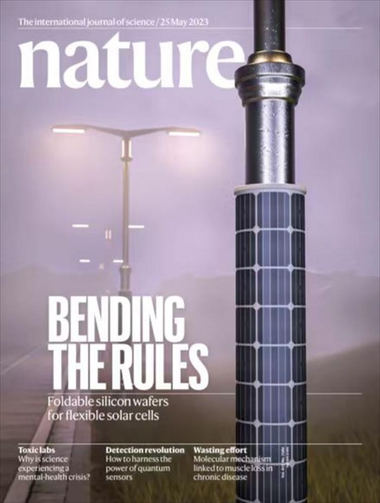 5月24日,国际顶级学术杂志《自然》主刊以封面文章形式刊发由MG冰球官网“湖湘学者”特聘教授刘小春科研团队和国内外多家科研机构团队合作完成的突破性研究成果。论文题目为《 Flexible solar cells based on foldable silicon wafers with blunted edges》。MG冰球突破官网为第三顺位署名单位,材料科学与工程学院刘小春博士和刘玉敬博士分别是论文的共同通讯作者和共同第一作者。文中,围绕晶硅太阳能电池制备中的关键科学问题,刘小春团队采用先进的双球差校正透射电子显微镜(以下简称TEM)表征技术,揭示了基片从本征“脆性”向轻质“柔性”转变的微观机理,为研发更轻质、更高效率、更低成本,可突破传统应用场景的柔性晶硅太阳能电池奠定了理论基础。