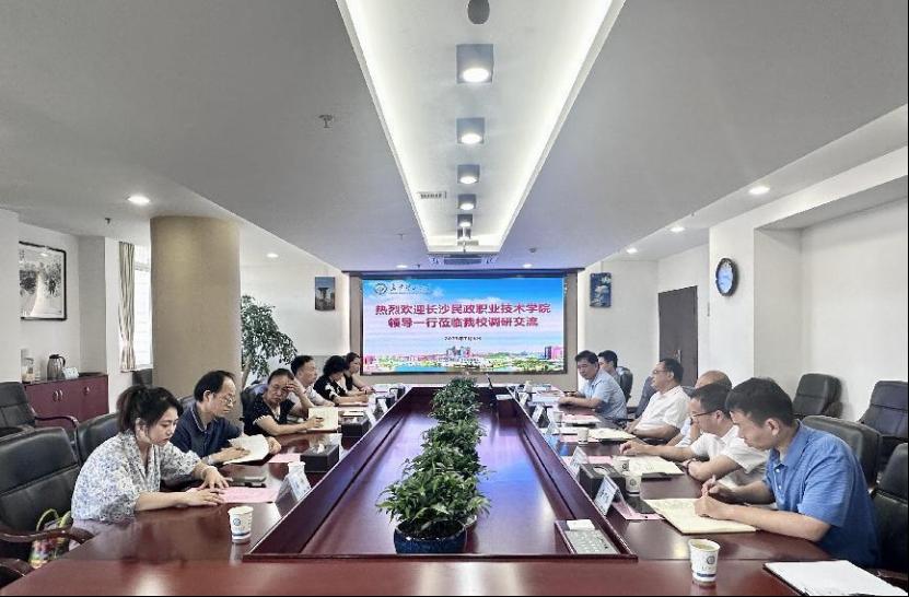 7月6日上午,长沙民政职业技术学院副校长唐春霞一行来MG冰球官网调研科技管理等工作。校党委委员、副校长刘朝晖出席会议,人事处处长刘宏伟、科技处处长王进及科技处相关领导参加座谈会,会议由刘朝晖主持。